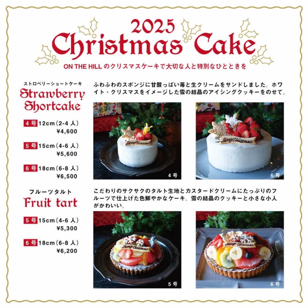 ON THE HILLのクリスマスケーキで大切な人と特別なひとときを過ごしませんか?今年もふわふわのいちごケーキと、フルーツたっぷりのタルトの2種類をご用意しました。