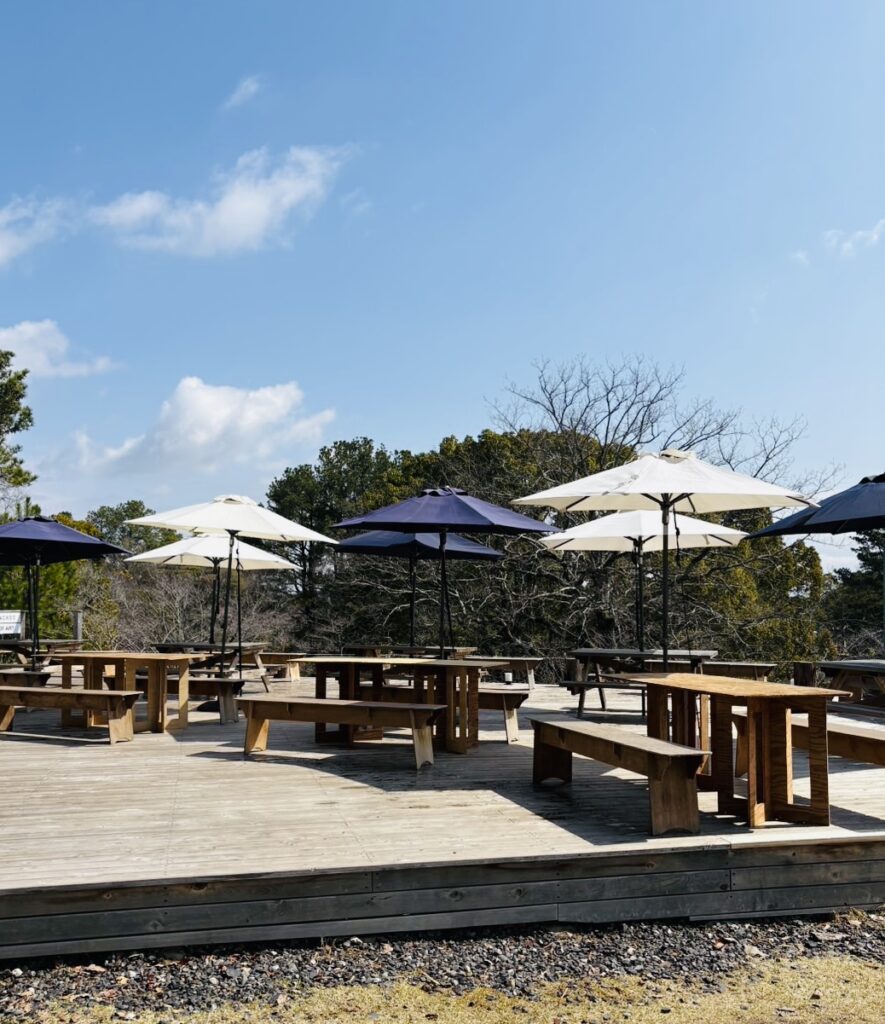 こちらのデッキから日岡山公園の桜を眺めながら過ごす時間は、今の季節だけの格別なひとときです