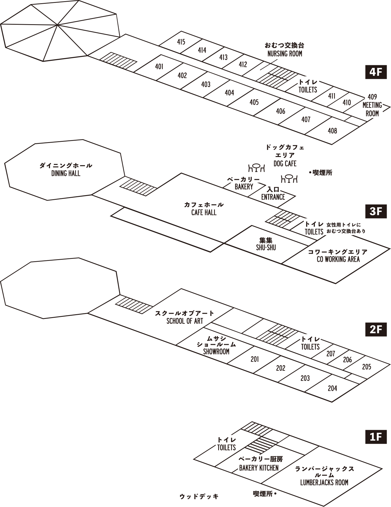 ON THE HILL3階はお客様をお迎えし、最高の景色とともにカフェ・レストランでゆっくり過ごしていただくエリア。アーティスト岡本亮の世界観をアンティークギャラリー集集(しゅうしゅう)で体験し、お帰りにはベーカリーで香り高いパンをどうぞ。